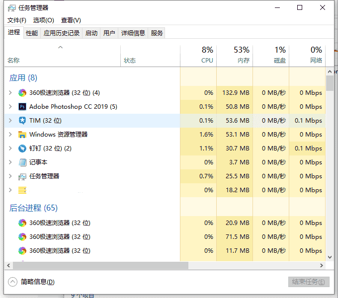 1、使用快捷方式“Ctrl+Shift+Esc”打开“任务管理器”。