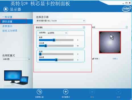 4、选择“颜色设置”,然后就可以设置亮度了,同时还可以调节色调、对比度、饱和度等。