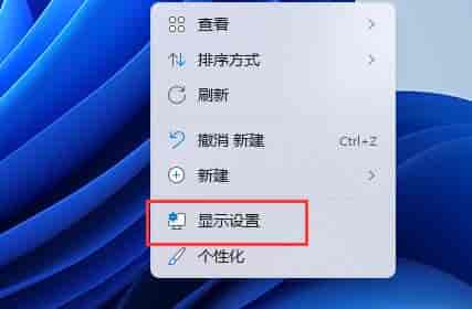 4、更新完成后,右键桌面空白处,进入“显示设置”