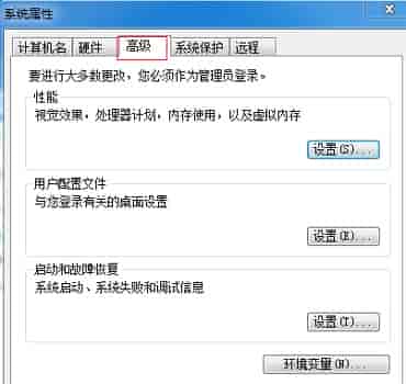 3、进入了系统属性,在“系统属性”中看到上面“高级”字样,点击“高级”,看到下面有个“性能”字样,点击性能下面的“设置”。