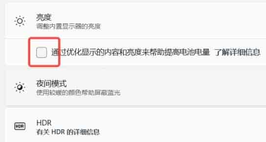 第四步,勾选开启“通过优化显示的内容和亮度来帮助提高电池电量”选项即可开启自动亮度调节。
