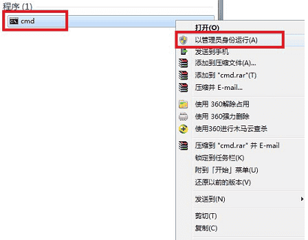 2、然后右键点击cmd文件,选择“以管理员身份运行”。