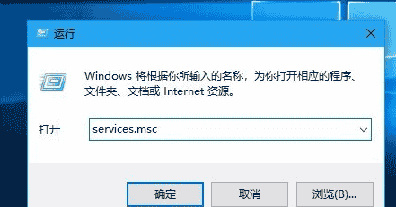 3、接着在打开的Windows10运行窗口中,输入命令“services.msc”,然后点击确定按钮运行该程序。