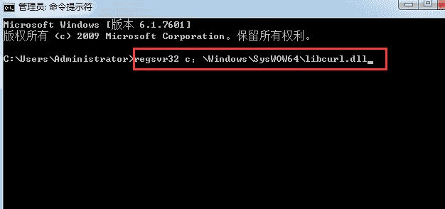 64位Win7操作系统将文件直接复制文件到C:\Windows\SysWOW64,开始-程序-附件-命令提示符,右键点击,管理员身份运行,键入regsvr32 c:\Windows\SysWOW64\libcurl.dll,回车即可。