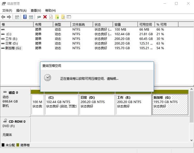 2、然后在分区列表中,右击分区的部分,并选择“压缩卷”。