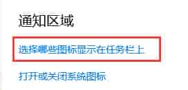 3、然后在右侧的通知区域下点击“选择哪些图标显示在任务栏上”