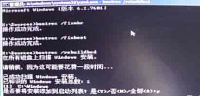 输入BOOTREC /REBUILDBCD按回车,按照屏幕提示选择y,最后输入exit退出命令行窗口。