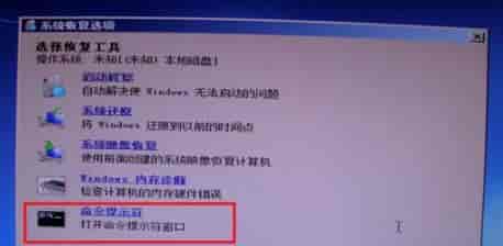 5、在恢复窗口中点击“命令提示符”。