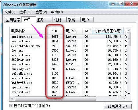 win7任务管理器pid怎么显示
