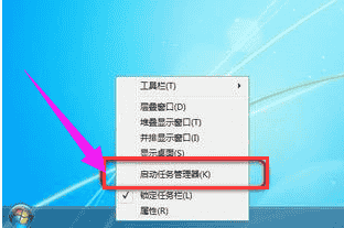 1、鼠标右键点击任务栏,点选“启动任务管理器”。