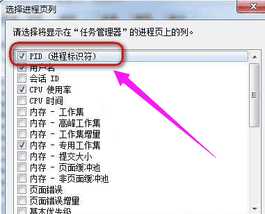 win7任务管理器pid怎么显示的设置: