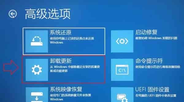 4、重启后,在“高级选项”里选择“卸载更新”就可以退回之前的系统了。