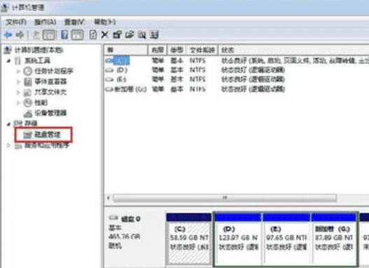 2、从弹出的计算机管理界面中选择磁盘管理。