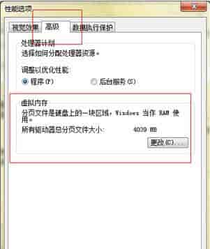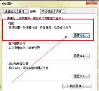选择第一栏中的性能后面的设置按钮。进入虚拟内存的设置选项。