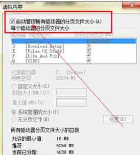5,单击更改后,进入,选择自动管理所有驱动,这样内存就不会提示不足了。