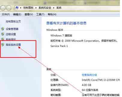 2,进入属性界面在左侧有一个高级设置,单击进入。