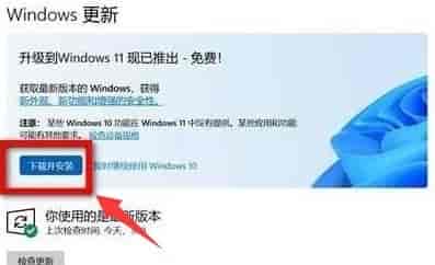 3、打开后,看看Windows更新里能不能直接“下载并安装”win11。