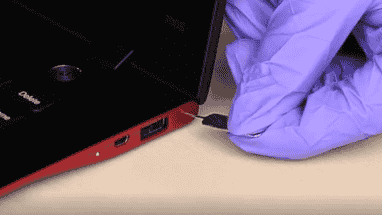 1、首先找到联想一键还原按键,有的是针孔式的
