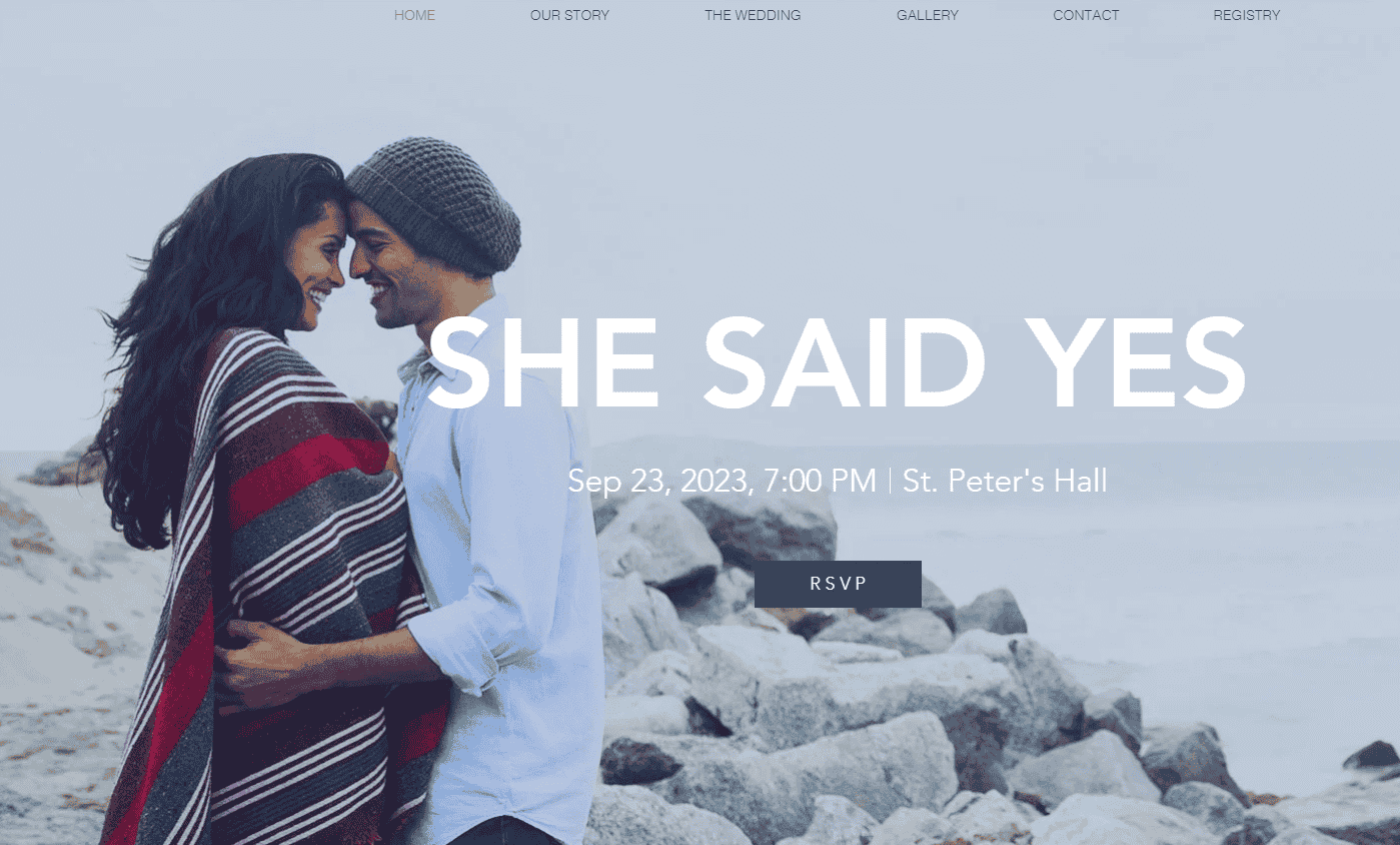 Wix为你提供了一组在线创建精美的婚礼公告的选项。你可以使用其专有的拖放构建器构建自己的网站,也可以使用其中一个预配置的婚礼或庆祝模板。
