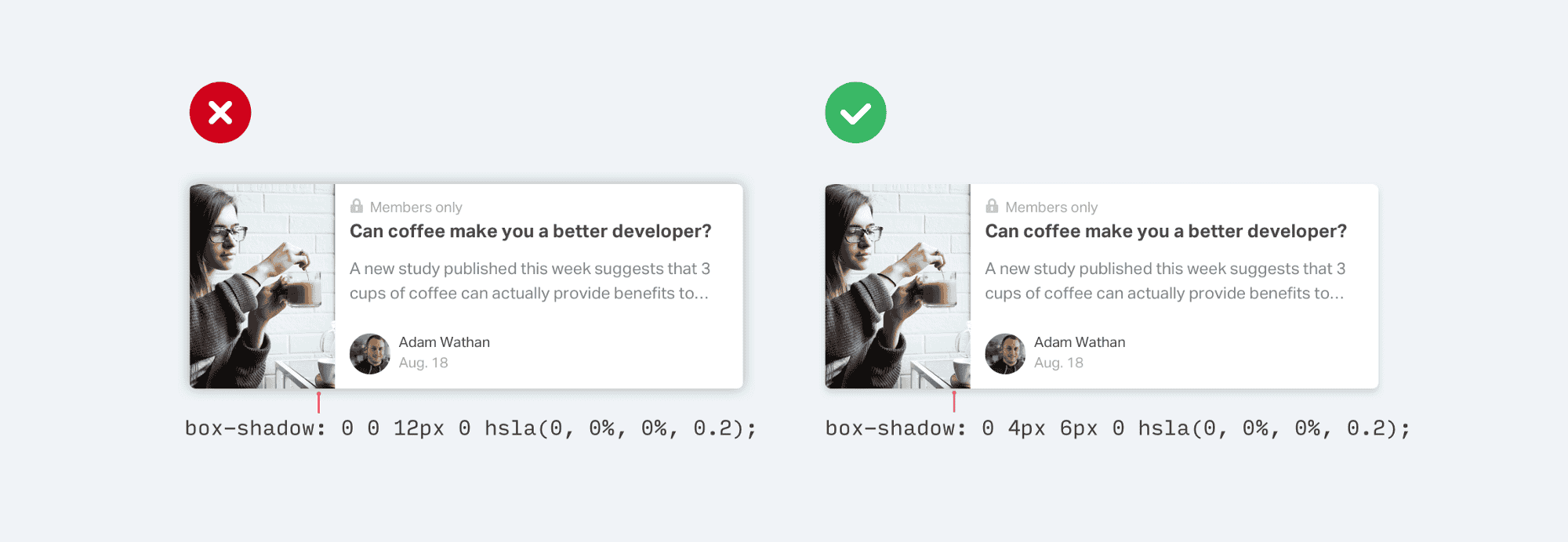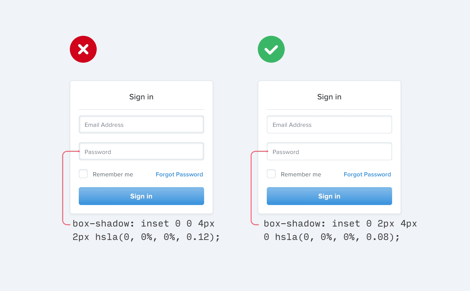 box shadow 同样可以营造出边界感,而且更加微妙,并不会显得突兀,不会分散用户的注意力。