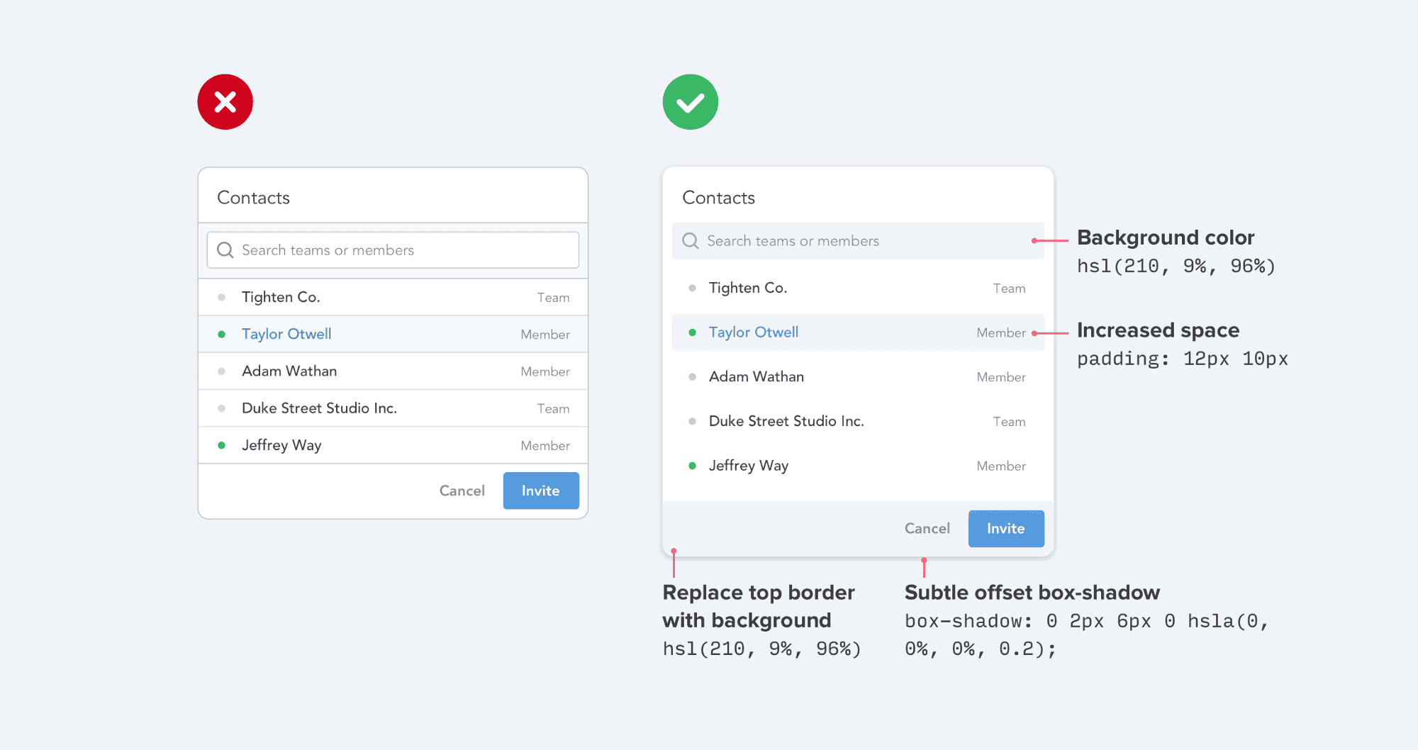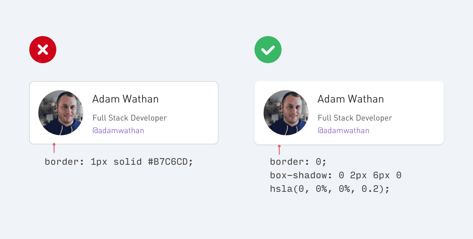 虽然 Border 是分隔两个元素的好办法,但是它不是唯一的方法,使用过多会让整个布局的设计感降低,甚至会造成混乱。