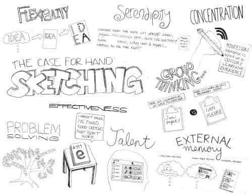 手写生不仅提高创意产生的过程,但它提供了一个有效的,可视化的语言,使得它更容易让别人理解,评论和整合你的想法。这可能是在跨文化的群体,对他们来说更重要的视觉草图可以弥合差距的理解。