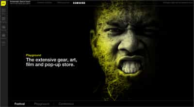 阿姆斯特丹舞蹈活动 这里的布局真的有助于向人们展示了这一事件的态度和精神。左侧导航运行,成为整个网站的一个参考点。旋转强,视觉刺激图像的幻灯片事件的节日,操场和会议的玩笑。这是一种有效的方式来吸引用户。