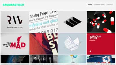 Baumastisch 这种紧密的网格布局是一个很好的方式,向人们展示了组合的工作。当你将鼠标悬停在每件作品,题目给定的,但是当你点击一个工作时,会出现一个“头版”的工作。此页面提供了所有必要的信息有关的项目,如日期,客户端,DESINGER的作用等,这是贯穿始终的所有项目。你必须通过点击填满屏幕幻灯片查看项目。我认为这是一个非常有效的方式来展示工作。
