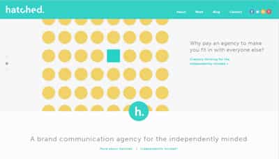 孵化 出壳的布局是固定运行宽在屏幕上的导航和部分,创造一个大胆和开放性。有趣的是,响应导航。在一个小屏幕上,它可能看上去很笨拙,但在这里,导航,包括社交网络按钮,保存到一个菜单按钮。