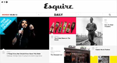 君子 这里的布局是简单,干净和方便。Esquire的身份是一个单色的黑色和白色。文章玩笑色彩,吸引读者的眼球。悬停效果也简单,与传情标题下面的说明。导航是在中间的网站,功能很像一个报纸,读者变得好奇倍以上内容。的图像,色彩和简短的标题抓住用户的注意力。