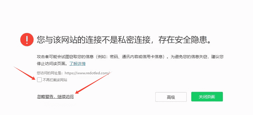 360浏览器 点击忽略警告可以正常访问