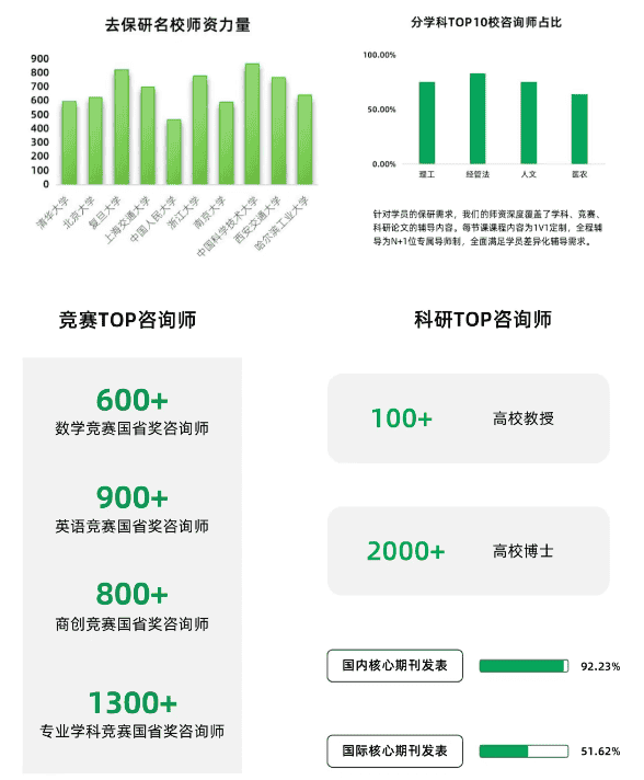 师资数量与质量:高顿去保研的师资库覆盖师资超20000人。导师层次上,咨询师覆盖了清北复交领衔的C9、985、211高校以及国内科研院所等;专业上,涵盖哲学、经济学、法学、教育学、文学、历史学、理学、工学、农学、医学、军事学、管理学、艺术学等十。这使得高顿去保研能够为学生提供全方位、深层次的学术指导。
