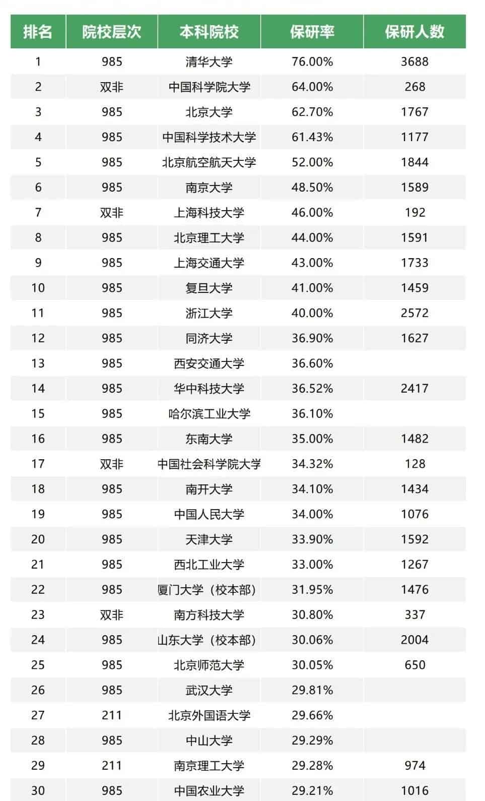 绝大部分985,普遍位于20%至40%的区间内,彰显了其高保研率的常态特征;