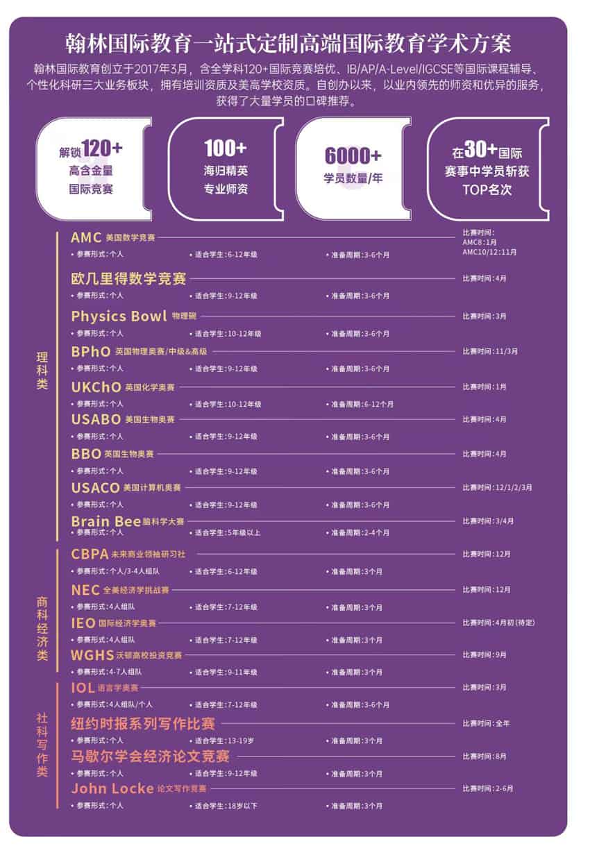 2025国际竞赛月份时间轴 (翰林国际教育整理)-翰林国际教育一站式定制高端国际教育学术方案翰林国际教育创立于2017年3月,含全120+国际竞赛辅导、IB/AP/A-Level/IGCSE等国际课程辅导、个性化科研业务板块,拥有培训资质及美高学校资质。自创办以来,以业内持平的师资和优异的服务,获得了大量学员的口碑推荐。
