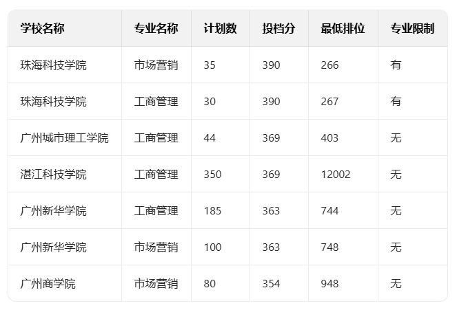 民办(21所):广州南方学院、广东培正学院、广州华商学院、广东白云学院、广州软件学院、广州华立学院、广州工商学院、广州科技职业技术大学、广州新华学院、广东东软学院、广州城市理工学院、湛江科技学院、广州应用科技学院、珠海科技学院、广东科技学院、东莞城市学院、广东外语外贸大学南国商学院、华南农业大学珠江学院、广州理工学院、广州商学院、广东工商职业技术大学
