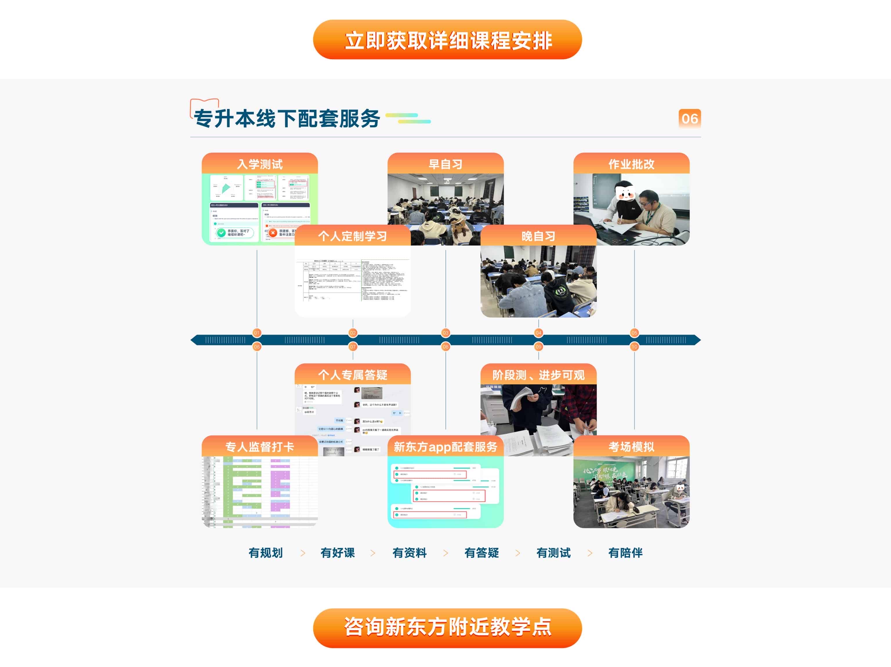 四川新东方为专升本的同学专门打造了一系列的备考资料和课程安排,以确保你在升本之路上稳步前行。四川新东方专升本采用阶段教学体系, 精细化多轮滚动学习,综合提高同学们的应试能力。 大二、大三的同学,现在可以直接咨询右下方弹窗的在线老师! 获取0元的学习规划!了解更多升本信息! 新东方为你升本之路保驾护航!