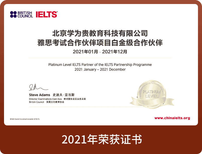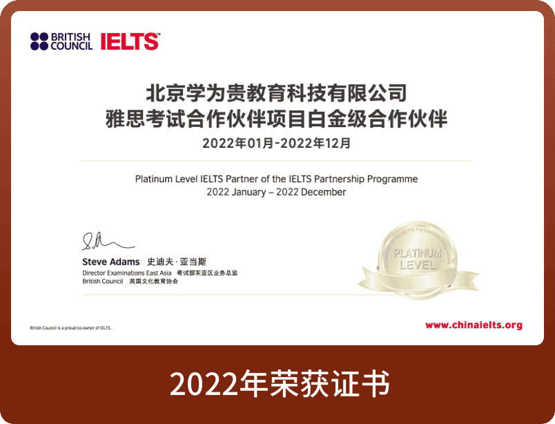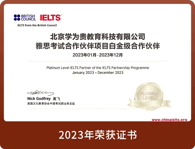 连续多年荣获 雅思白金级合作伙伴
