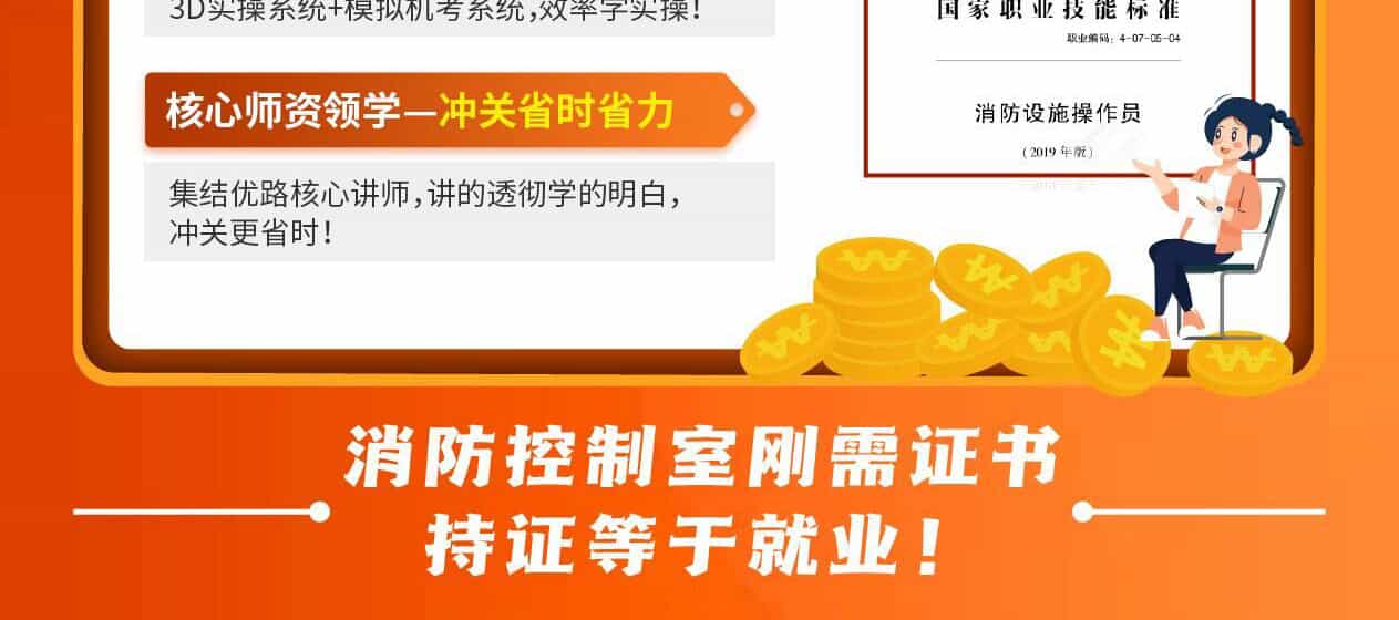 课程方向:侧重自动消防设施、电气检测等实操内容,支持线上网课。