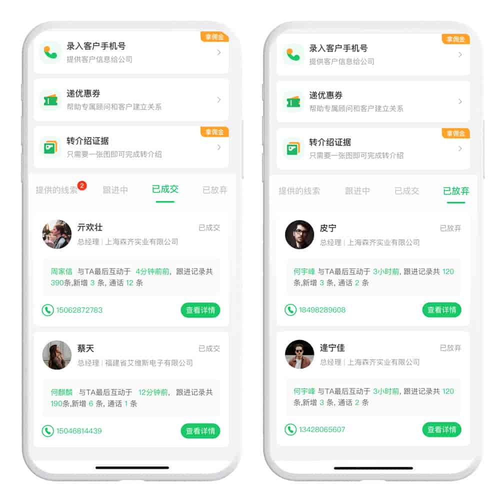 为什么99%的企业做不好转介绍?1、老客户没动力:老客户没有动力,没给老客户适合的好处!你给的好处,不是客户想要的!不要用胡萝卜钓鱼!2、新客户没好处:对新客户,没有好处,或者好处吸引力不够大!3、不会转:没有转介绍内容话术,介绍人不知道如何转介绍?4、没空转:客户答疑、跟单繁琐,介绍人没有精力和时间,回答产品问题!5、不持续:如果销售没有成交,介绍人0佣金,转介绍不持续。6、没归属:客户线下付款,客户归属无法判定,无法发佣金。7、没动力:合作不透明,钱不兑现,自然介绍人不会帮你推荐新客户!《龙兵全员合伙人-客户转介绍系统》完美解决以上问题,欢迎咨询!