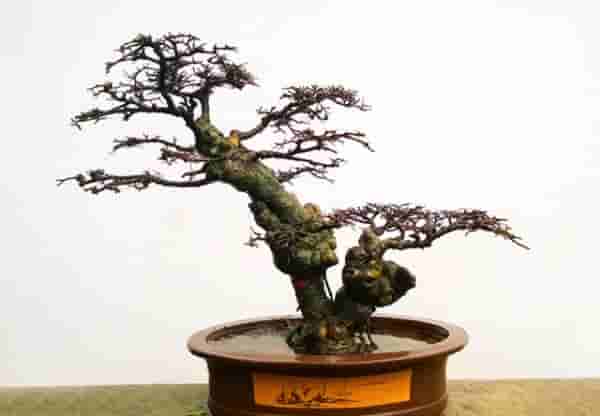 造型特点:薄片结扎,层次分明。擅长直干或三五株栽于一盆,以表现莽莽丛林的特殊艺术效果。