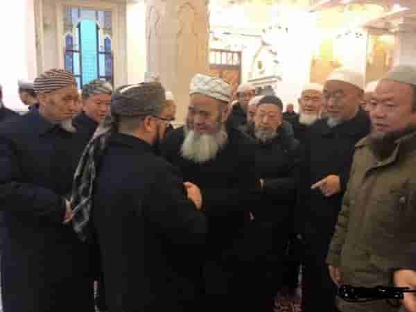 缠灰色戴斯达勒(头巾)、留黑色胡须的为阿訇,图为阿訇群众送别阿訇