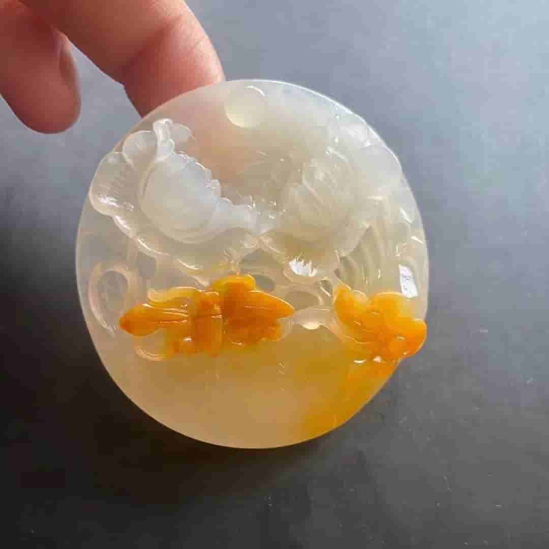 黄龙玉不仅颜色丰富艳丽,又加上当今雕刻师们赋予它的文化内涵,再结合“东情西韵”的元素,让黄龙玉一举成名,具有极高的收藏价值。