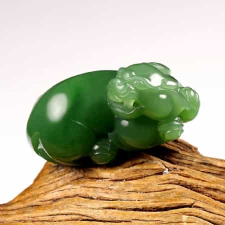 其次,貔貅的雕件,能更好的阐释玉的温润性。貔貅是圆雕雕件,表面有很多球形的曲面,这样就能更好的体现出玉本身温润的质感。而且貔貅多是把件,形状圆润,相对于一些人物题材更适宜把玩。