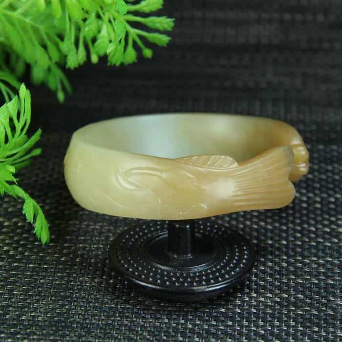 这种镯子往往是因为料子板刚好有裂纹横穿,无法打出一支完整圆形的镯子而产生的,也有些是因为镯子因外力导致横穿裂,于是干脆敲掉这一区域,留出开口。