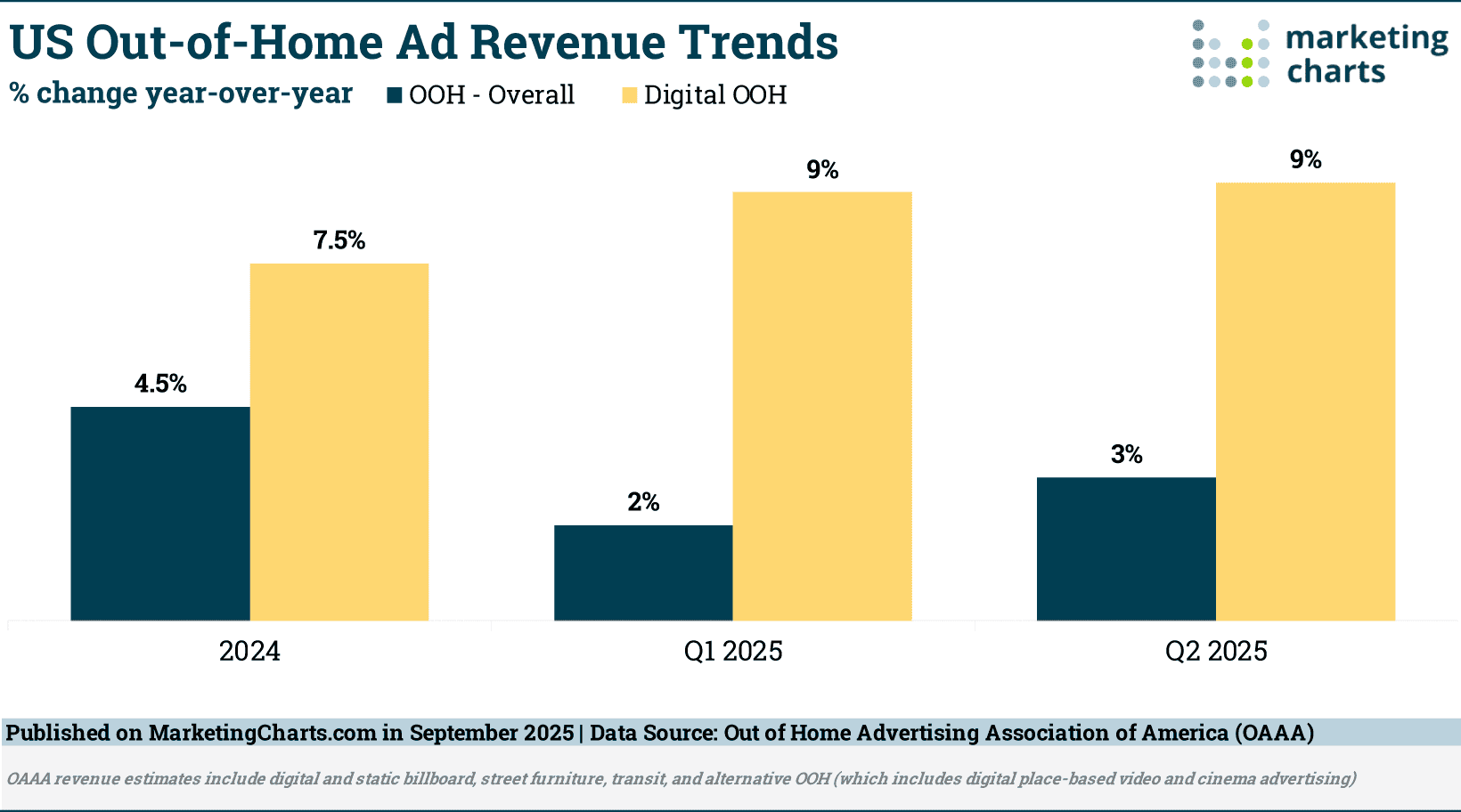 根据美国户外广告协会(OAAA)的数据,户外广告收入在2025年第二季度增长了3%,达到28.6亿美元。第二季度的表现将今年迄今的户外广告收入增长了2.6%。