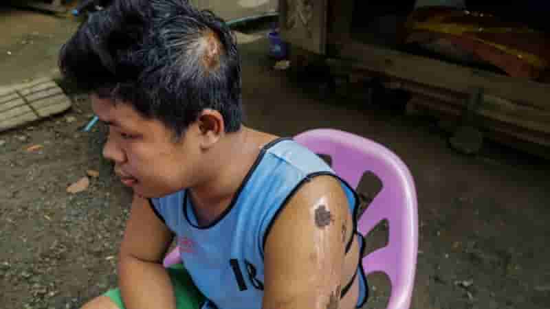 23岁的纳弥头上缝了14针,身上伤痕累累。他大学毕业,有缅甸文学学士学位。最开始他在废矿石上捡漏,是想假期赚点零花钱。毕业后他觉得做其他都没有兴趣,就回到矿场。他说,现在觉得这是自己唯一能做的工作。