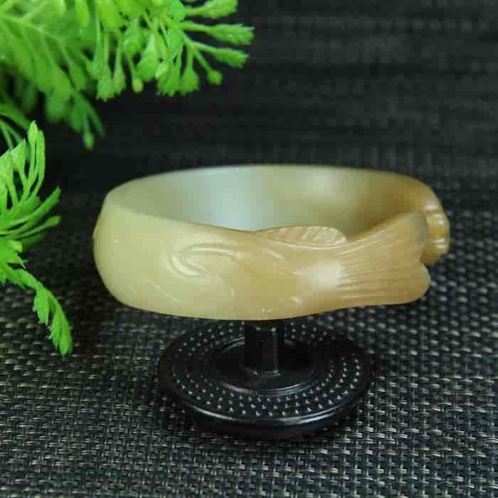 这种镯子往往是因为料子板刚好有裂纹横穿,无法打出一支完整圆形的镯子而产生的,也有些是因为镯子因外力导致横穿裂,于是干脆敲掉这一区域,留出开口。
