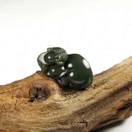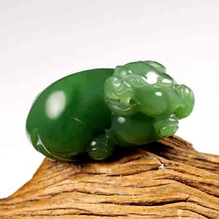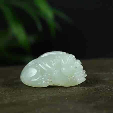 其次,貔貅的雕件,能更好的阐释玉的温润性。貔貅是圆雕雕件,表面有很多球形的曲面,这样就能更好的体现出玉本身温润的质感。而且貔貅多是把件,形状圆润,相对于一些人物题材更适宜把玩。