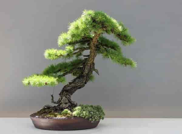 造型特点:薄片结扎,层次分明。擅长直干或三五株栽于一盆,以表现莽莽丛林的特殊艺术效果。