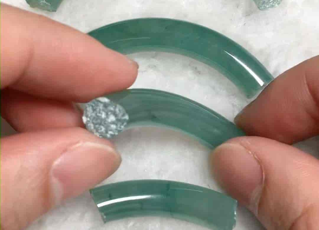 以上是翡翠的断面和做过切割打磨的翡翠原石